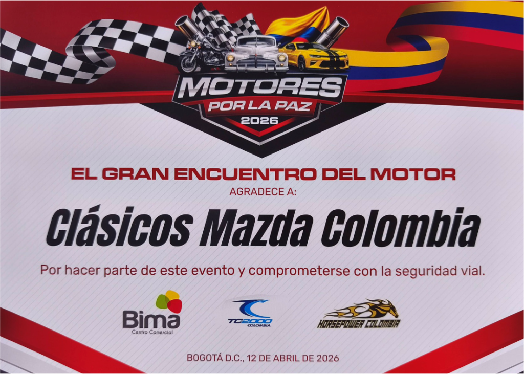 El pasado 21 de Junio en las instalaciones del Automóvil Club de Colombia se formalizó el convenio para la evaluación de los vehículos Mazda que tengan más de 35 años y cuyos propietarios deseen aplicar para la obtención de placas de antiguo.